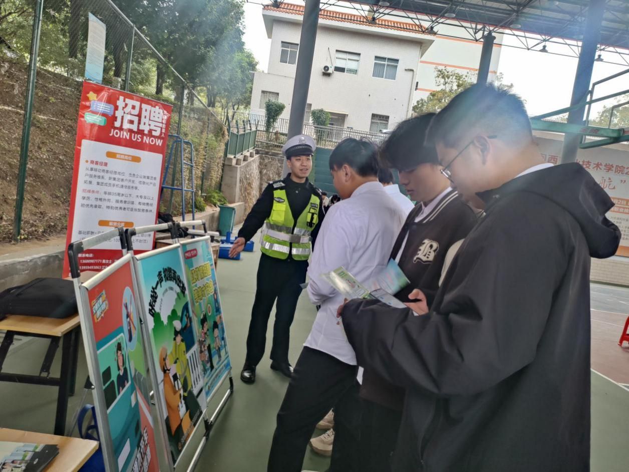 在征兵国防专区,现场工作人员通过政策解读、一对一咨询解答,详细解答毕业生关心的入伍条件、优待政策等问题,吸引大批学子驻足咨询,现场反响热烈。安全教育宣传专区,新罗区交警则以“喝酒不开车,开车不喝酒”“红灯很短暂,等等才安全”为核心,通过主题展板讲解交通安全知识,强化学生出行安全观念;曹溪派出所民警结合真实求职诈骗案例,通过发放宣传手册、播放警示片,直观揭露“虚假招聘”“岗前收费”等骗局,切实提升毕业生风险防范意识。