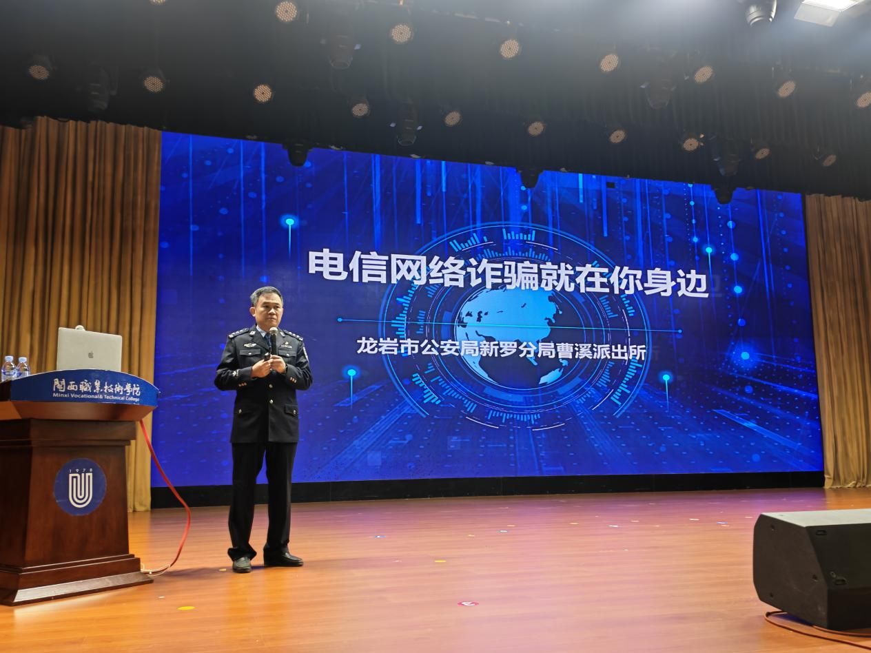 曹溪派出所黄行伟所长以“电信网络诈骗就在你身边”为核心,结合近年来校园高发的刷单返利、冒充师长、客服转账、校园贷、游戏账号交易诈骗等典型案例,深入拆解诈骗分子的作案套路、话术设计逻辑,系统讲解防范技巧与遭遇诈骗后的维权流程、报警渠道,并通过现场互动问答、案例情景模拟等形式,引导师生主动思考、积极参与,强化学习记忆。