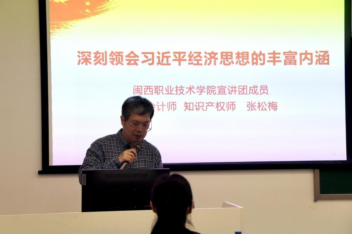 3月31日下午,我校宣讲团成员、校离退休党总支第一支部党员、高级会计师、知识产权师张松梅同志,在万源楼实训室E为财经商贸学院团员学生代表等开设学习宣传习近平经济思想专题讲座。该讲座是财经商贸学院深入开展习近平经济思想系列专题宣讲活动之一。系列讲座由校宣传部(统战部)、财经商贸学院党委、马克思主义学院、校离退休党总支联合承办。