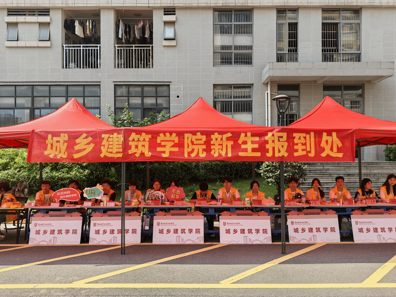 迎新现场,“城乡建筑学院新生报到处”几个大字在红色帐篷的映衬下格外醒目。学长学姐们提前为新生整理好班级报到资料,还在现场一对一地为新生介绍班级情况、校园学习生活注意事项等。身着统一服装的志愿者们穿梭忙碌,为新生和家长们提供引导、咨询、行李搬运等服务。