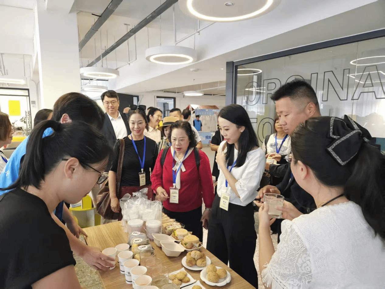 参访团深入基地,系统考察了我院在创新创业教育方面的实践成果。在“无界创客驿站”,成员们品尝了酒店管理专业创业实训项目“8号铺子”的学生制作的早点与饮品,并对学生将专业所学转化为创业实践的能力表示高度赞赏。“岩壹造物”与“闲造社”工作室展示了学生将艺术创意与传统文化相结合的创新作品,剪纸等非遗项目的现代表达形式,吸引了参访团的浓厚兴趣。“文小影”和“故乡部落”工作室则突显了学生在视频拍摄与图文设计方面的专业素养,体现了双创教育在数字内容领域的应用成效。龙标文创集市摊车前,琳琅满目的特色商品和校园文创产品,展现出学生项目从创意孵化走向市场运营的初步成果。