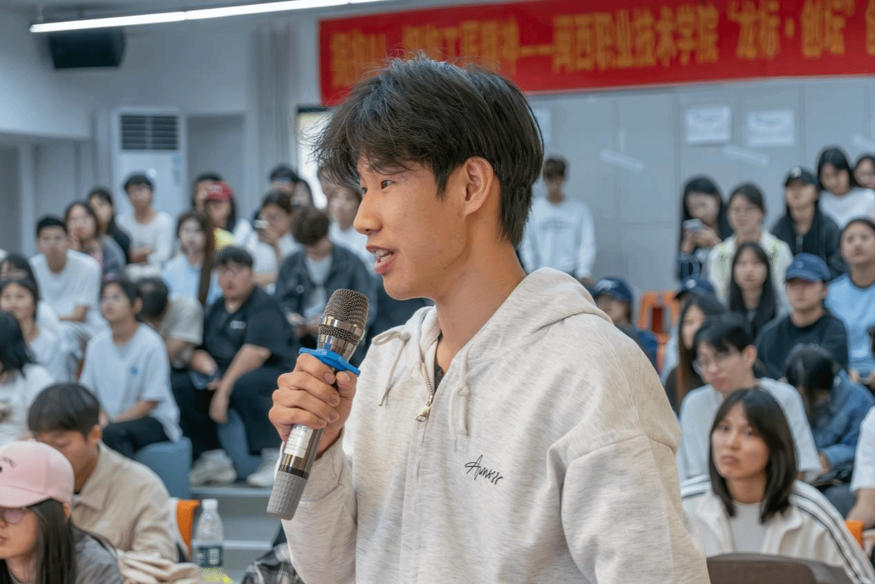 在互动环节,同学们积极提问,与校友、老师深入交流,现场氛围热烈。校友们耐心解答困惑,分享实战经验,为学子拨开创业迷雾。
