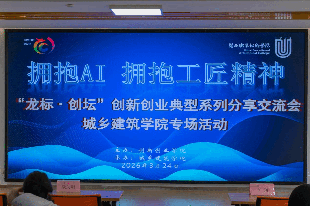 为深入推进创新创业教育,以AI赋能学生成长,传承工匠精神,3 月 24 日下午,闽西职业技术学院 “龙标・创坛” 创新创业典型系列分享交流会第一期・城乡建筑学院专场在万源楼三楼龙标双创孵化基地路演厅圆满举办。