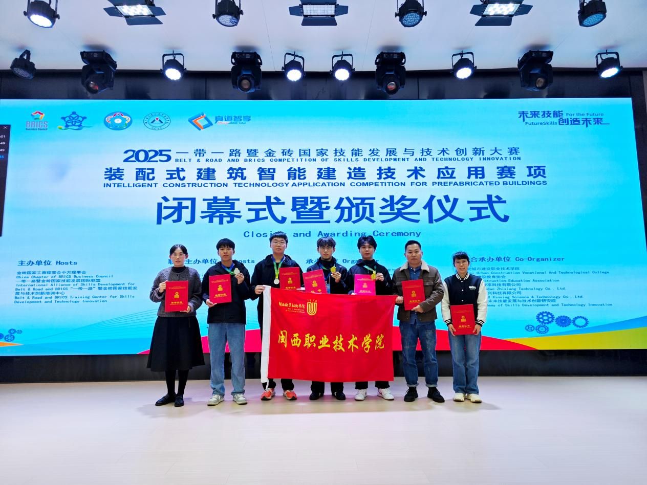 10月24日,2025年一带一路暨金砖国家技能发展与技术创新大赛——装配式建筑智能建造技术应用赛项决赛在湖北城市建设职业技术学院落下帷幕。我校学子在比赛中表现出色,由王秋丽、何芮老师指导的团队(参赛选手:钟敬祥、童李鹏),荣获全国一等奖;由黄晓丽、詹闽研指导的团队(参赛选手:高建友、熊家鹏)荣获全国二等奖。