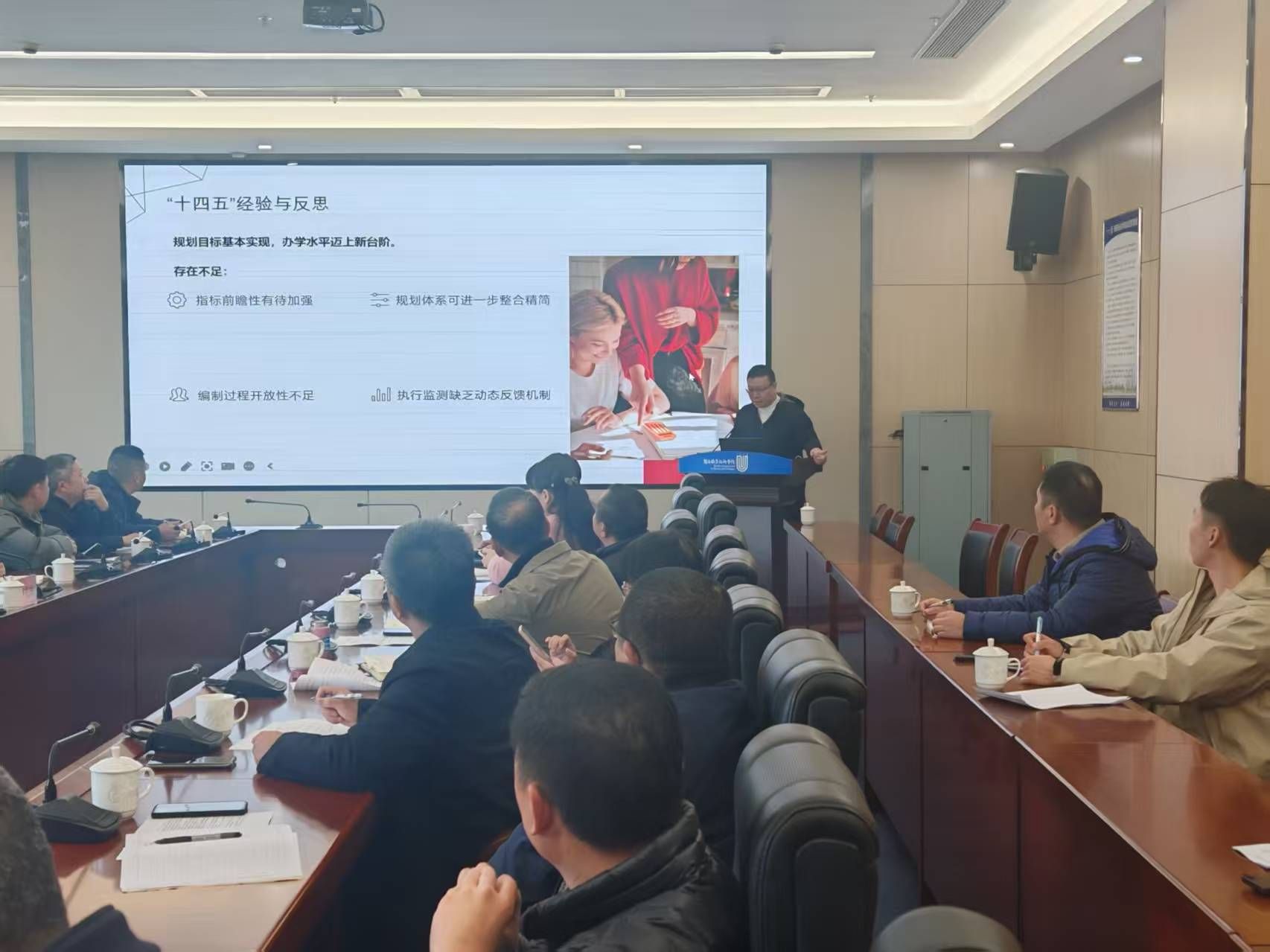 梁俊平校长在会上指出,“十五五”时期是学校实现内涵提升、特色发展、打造高职教育品牌的战略机遇期,全校上下要锚定办学层次上台阶,办学质量上水平,办学格局上品味,办学条件上档次,全力以赴推进学校高质量发展。针对规划编制工作,他强调三点要求:一是把握节奏,精准谋划。当前正处于规划提思路、出框架的关键阶段,要紧密衔接党代会报告与“十五五”规划的内在逻辑,紧扣高质量发展核心主题谋划思路;秉持开放办学理念,主动吸纳国家、省、市各级规划有益信息,高效推进框架搭建。二是抓住关键,优化专业。人才培养是高等学校的中心任务,专业设置是人才培养的核心环节,要果断调整老旧专业,以模块化思维科学优化专业布局;积极谋划重大项目,以大项目引领学校整体发展提质增效。三要强化保障,协同推进。各部门(单位)要切实担负起编制工作的主体责任,以高度的责任感和使命感,带领全体师生共同关心、积极参与、全力支持规划编制工作。部门与学校、部门与部门、部门与二级学院之间要加强协同沟通,形成强大的工作合力,确保规划高质量完成。