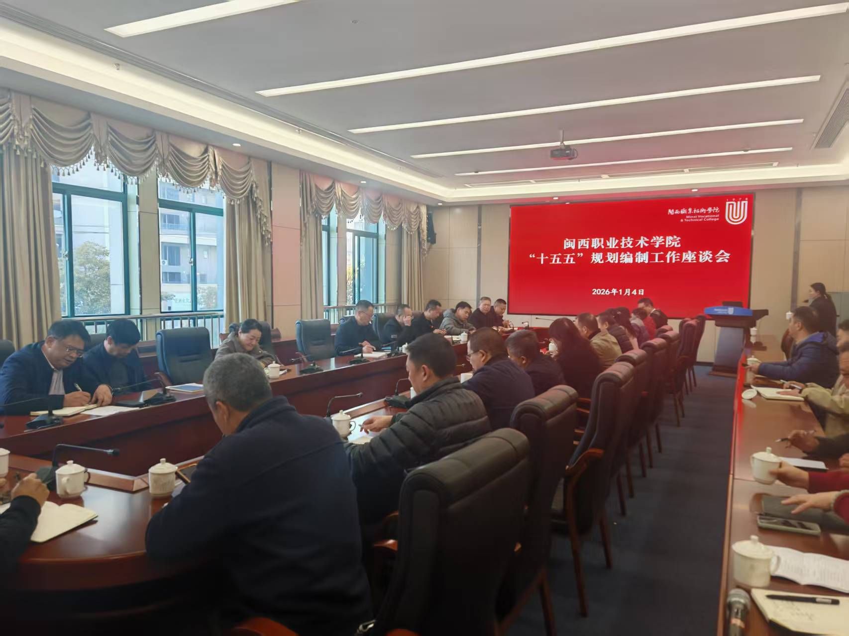 为精准擘画学校未来五年的发展蓝图,稳步推进“十五五”事业发展规划编制工作,2026年1月4日下午,我校在岩声楼二楼会议室组织召开“十五五”事业发展规划编制工作座谈会。校领导梁俊平、卢兆梅出席会议,各部门、单位主要负责人及各二级学院党政主要负责人参加会议。会议由卢兆梅副校长主持。
