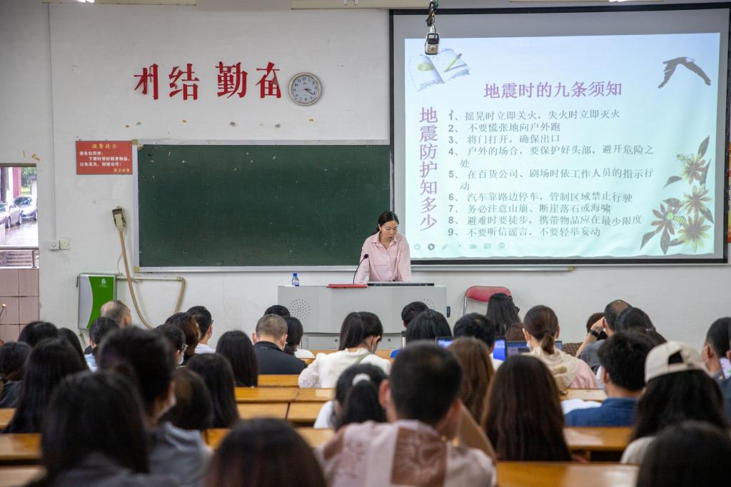 5月12日是我国第14个“全国防灾减灾日”,我校举行防灾减灾日“四个一”活动,即:营造一个“减轻灾害风险 守护美好家园”主题氛围;观看一个《5.12全国防灾减灾日专题片》视频;听取一堂《5.12防灾减灾安全知识讲座》;参加一次地震、火灾逃生演练。此次活动由学校主办,安全保卫处、学生工作处具体承办,安全保卫处全体成员、学生工作处相关工作人员、辅导员、实验员、校自律会成员等参加了讲座和现场演练。全校师生以观看视频形式参加。