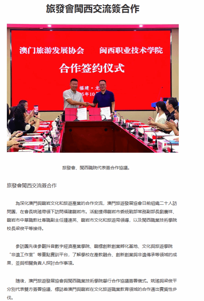 【澳门市民日报】澳門旅遊發展協會赴閩西簽合作協議開啟閩澳文旅新篇章