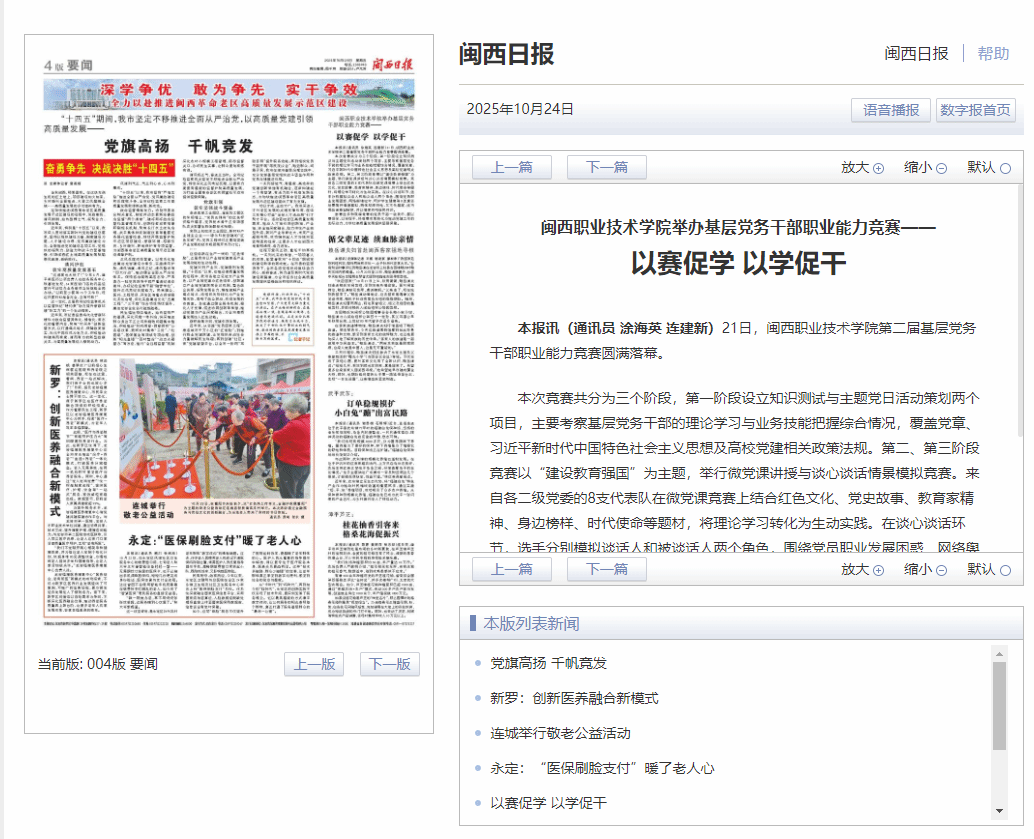 本报讯(通讯员 涂海英 连建新)21日,闽西职业技术学院第二届基层党务干部职业能力竞赛圆满落幕。