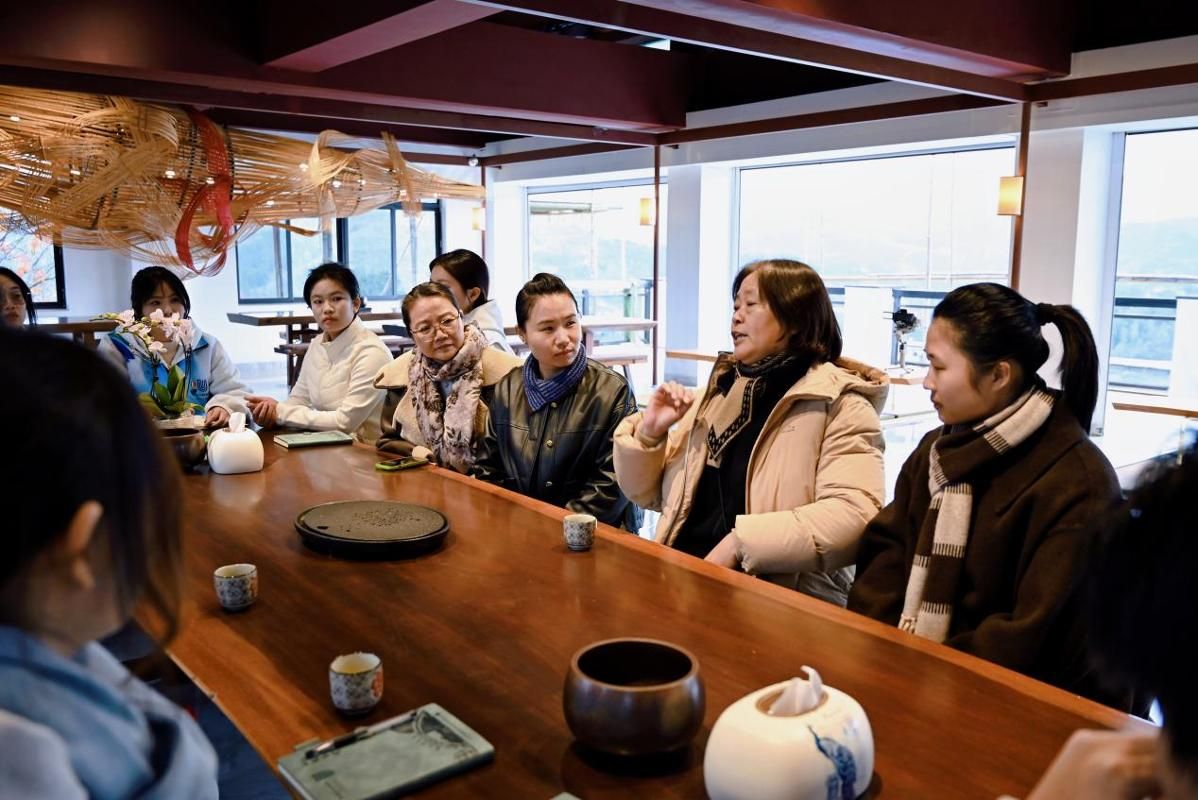 座谈与走访中,台商同胞与实践团围坐茶席,深入交流:南投县冻顶茶叶合作社樊期俊解析永福与阿里山的产茶优势及工艺差异;“台二代”吴曜任讲述十余年深耕大陆,引入台湾茶叶机械技术、带动产业共富的创业历程;福建漳平鸿鼎农场开发有限公司负责人分享其扎根大陆的坚守,工作人员的茶艺演示让师生沉浸式感受茶文化的魅力。在台品樱花园,2022年度“三农人物”谢东庆的夫人夏翠菊女士向实践团分享其夫妇二人的创业故事,展现了茶旅融合的广阔前景。