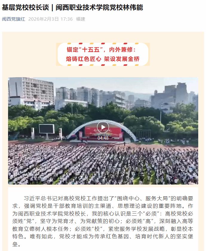 作者:闽西职业技术学院 编辑:宣传部 来源:闽西党旗红 发布日期:2026-02-03 阅读: