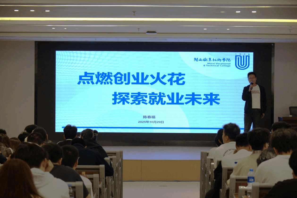 上午,双方聚焦“如何精准对接学子需求、推动双创工作高效落地”展开深度对话,并在资源共享、课程共建与赛事联动三大方向上达成共识。创新创业学院分享了校本部在龙标大学生双创孵化基地、创新创业训练中心、文创集市等平台建设方面的经验,以及吸纳大学生创业项目落地孵化的有效做法。立足新起点,创新创业学院将持续整合资源、优化服务,辐射汀州校区,把双创教育全面融入人才培养全过程,推动专业知识向实践能力转化。接下来将深入挖掘闽西苏区红色资源,建设“专业+红色文化”“技能+工匠精神”特色课程体系,完善竞赛与学分联动机制,促进创意落地与资源对接。汀州校区相关负责人表示将紧密对接长汀县稀土、文旅等特色产业,深化“校在园中、园在校中”的产教布局,实现人才成长与地方发展的同频共振。当日下午,创新创业学院相关老师为汀州校区2025级新生开设了“点燃创业火花,探索就业未来”的启蒙讲座,从“自我认知”出发,引导学生梳理个人兴趣、优势与价值观,避免盲目跟风的择业误区,介绍了“先就业后创业、兼职创业、就业中创业、团队创业”四条柔性路径,以降低试错成本,拓展多元成长渠道。