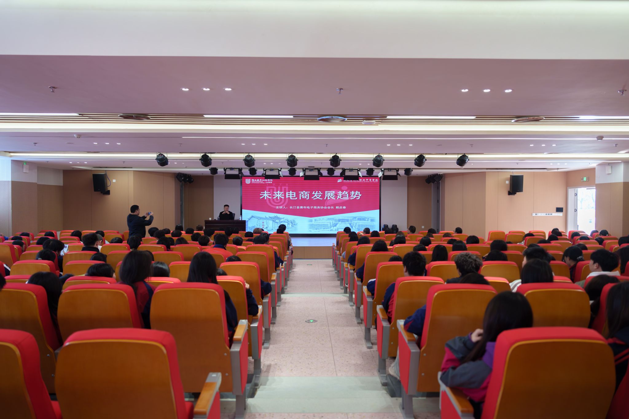 当日下午,一场精彩纷呈的电商沙龙在汀州校区学术报告厅举行。本次活动特别邀请长汀县青年电商协会会长赖启春主讲,他围绕当前电商行业发展趋势、乡村电商助农实践等热点话题,结合自身创业经历与长汀本地电商发展案例,为师生们分享了满满的干货。讲座结束后,师生们与赖启春会长展开积极互动,深入探讨“红色产品电商推广策略”“直播电商岗位能力要求”“县域电商人才发展路径”等议题。现场氛围热烈,与会同学纷纷表示深受启发,明确了今后的专业学习目标和职业规划路径。