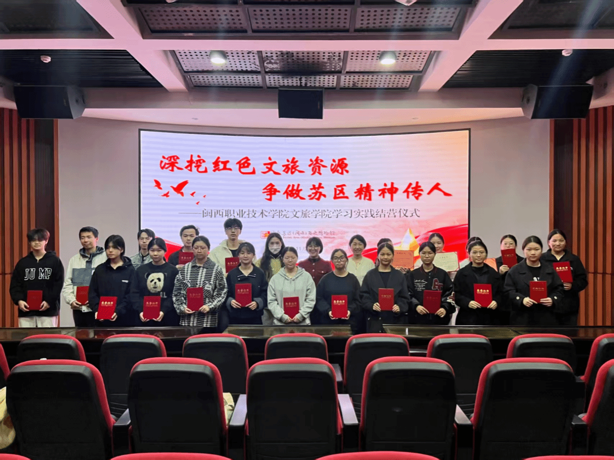 三家博物馆是闽西职业技术学院教学实践基地、思想政治教育基地共建单位,此次大规模、多场馆协同的跟岗实习,既充分发挥了文博场馆的红色文化资源优势与实践育人功能,又为旅游管理专业学生搭建了从“知”到“行”的转化平台,有效推动了课堂理论与行业实践的深度融合。同学们纷纷表示,两周的实习充实而难忘,不仅系统提升了讲解服务、文化传播、政务接待等专业技能,更在深入学习闽西红色历史的过程中,增强了文化自信与职业使命感,为未来投身文旅产业、传承红色基因奠定了坚实基础。