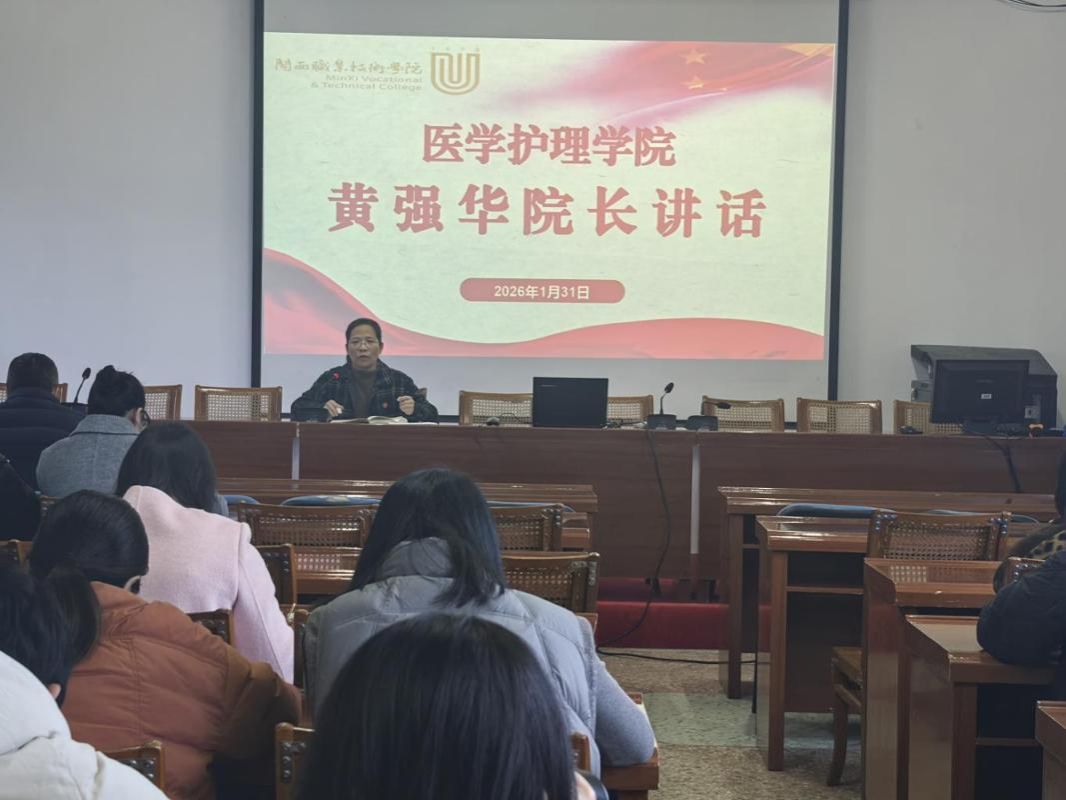 1月31日下午,医学护理学院在天马校区五楼会议室召开期末教职工大会。会议由院长黄强华主持,学院全体教职工参加。