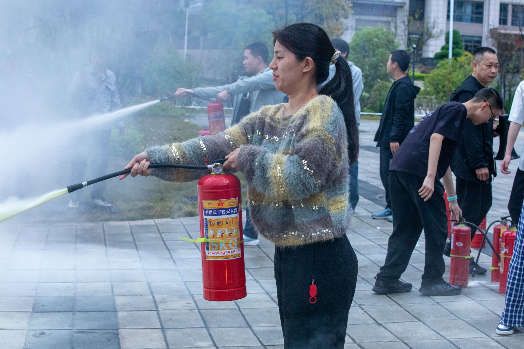 为促进理论学习向实践能力转化,活动同步组织消防应急演练实操培训。培训围绕校园火灾预防、初期火灾扑救、灭火器与消火栓规范使用、应急疏散逃生等关键环节展开系统讲解与示范。在指导下,全体党员逐一进行灭火器操作、消防水带连接等实战演练,在沉浸式体验中熟练掌握应急处置流程,切实提升防范化解安全风险的实战能力。