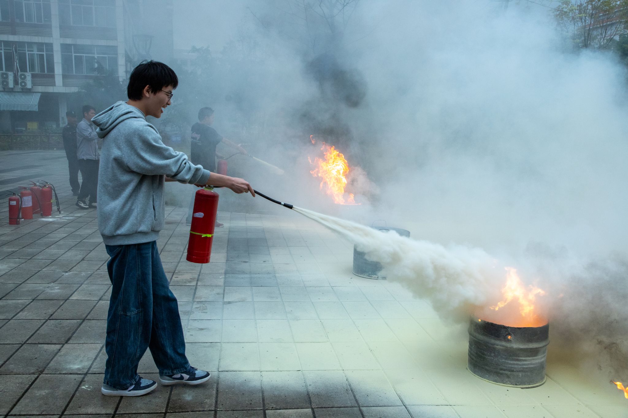 培训结束后,现场组织开展了应急疏散演练。在工作人员引导下,师生按照预定路线快速、有序撤离至安全区域。疏散演练完毕,工作人员现场讲解了干粉灭火器的操作步骤、使用要领及注意事项,并进行了示范。随后,师生分组依次进行油盆灭火实操练习。工作人员全程看护指导,及时纠正操作不当之处,确保每位师生都能掌握灭火器的正确使用方法,切实提升扑救初期火灾的能力。