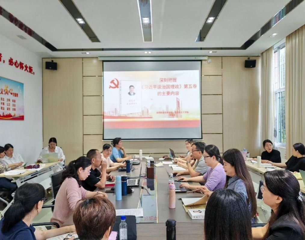 会后,学院组织全院教师开展常态化专题学习第一次集体学习,由林振东教授领学《习近平谈治国理政》第五卷。林教授解读了《习近平谈治国理政》第五卷的总体框架,并从理论逻辑、实践路径与育人启示等角度分享学习体会,引导教师将党的创新理论更好地融入思政课堂。