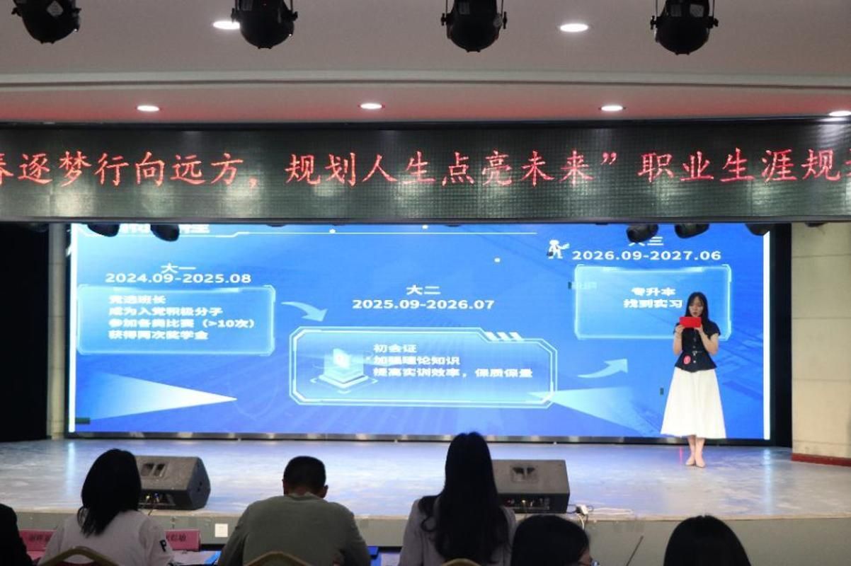 本次大赛以“青春逐梦行向远方,规划人生点亮未来”为主题,设有成长赛道和就业赛道。成长赛道面向2024级和2025级学生,就业赛道面向2023级和2024级学生。经各年级选拔推荐,多名优秀选手进入院级决赛。赛场上,成长赛道的低年级选手虽略带青涩,却满怀热忱,围绕自我认知与成长规划,条理清晰地阐述职业目标、阶段性学习计划与实践路径,展现出勇于探索、主动规划的态度。就业赛道的高年级选手则更显从容沉稳,聚焦岗位适配与求职实战,全方位展示专业能力。评委老师鼓励同学们以大赛为起点,持续深化自我认知,主动关注行业动态,将个人发展与时代需求紧密结合,脚踏实地走好每一步成长之路。