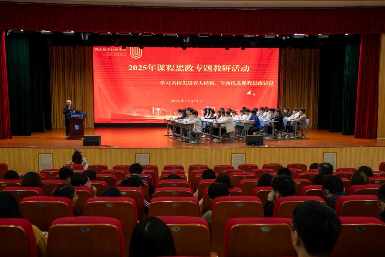 为深化课程思政教学改革,强化课堂教学育人功能,我校于2025年11月11日举办课程思政教研专题教研活动。活动特邀广东省级课程思政示范课程负责人、广州职业技术大学陈惠红教授进行《Web前端开发技术》示范课教学。副校长张源峰、教务处负责人及全体任课教师(含专任、校内兼课及校外兼职教师)参加了此次活动。