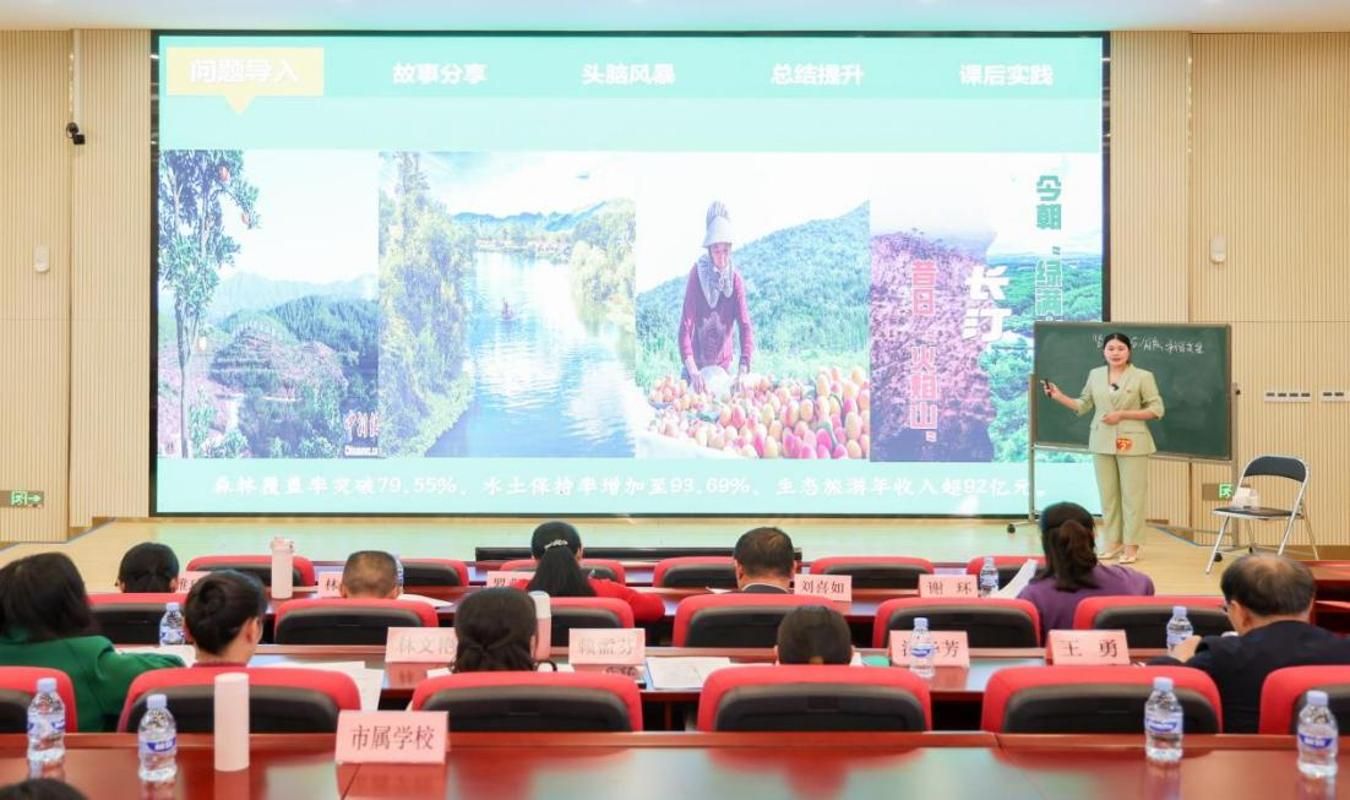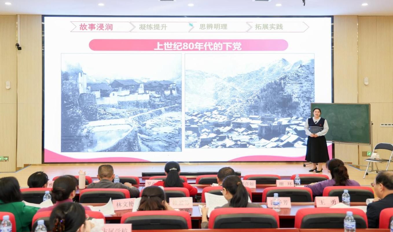活动现场,15 位来自不同学段的思政课教师依次登台,以片段教学的形式展现思政课堂的独特魅力。小学学段侧重启蒙引导,初中阶段聚焦价值培育,高中(中职)、高职与本科组课程则紧扣时代主题,深入剖析理论知识,凸显学科深度与广度,各学段循序渐进、螺旋上升,完整呈现我市大中小学思政一体化建设“启蒙—培育—深化—提升”的育人链条。