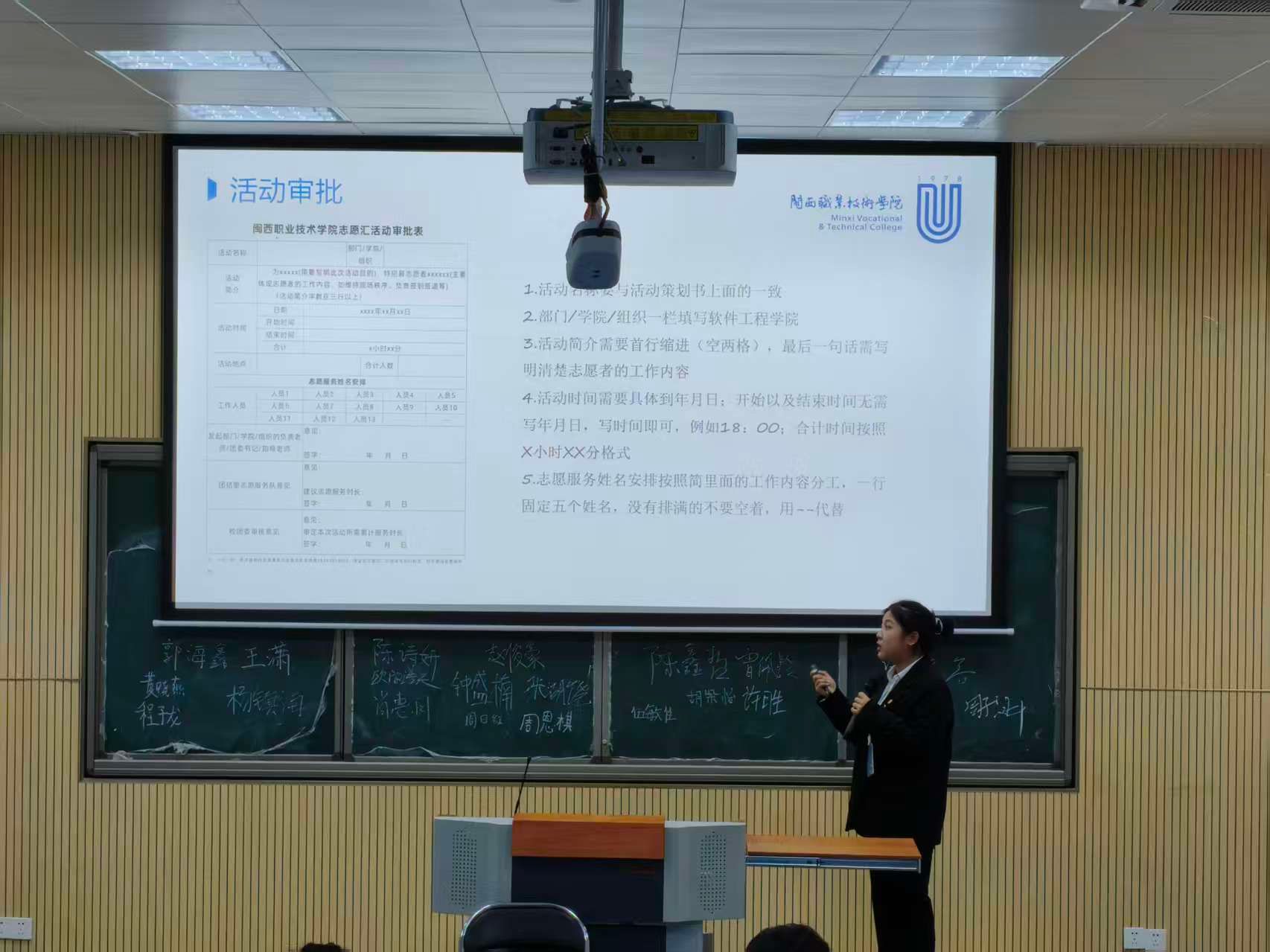 培训会在庄严的国歌声中拉开帷幕。会议内容充实,涵盖部门职责介绍、新干事风采展示及志愿服务策划、财务报销、工作礼仪等多项实用技能培训,为团队高效履职奠定坚实基础。