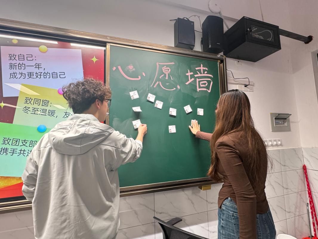 紧接着是包饺子环节,大家分工配合、互帮互学,在欢声笑语中包出满含心意的饺子,共品美味的同时收获协作之乐与集体温情。随后的“写心愿·向未来”环节里,团员们提笔写下个人成长、家国发展的心愿与祝福,一张张卡片定格青春期许,寄语前路。