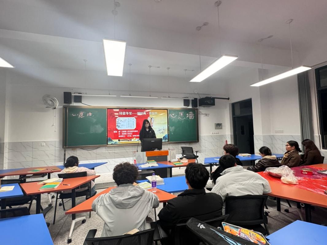 主题团日活动在轻松愉快的氛围中启幕,团支书甘怡欢通过图文并茂的PPT,细致讲解冬至的历史渊源、传统习俗与文化寓意,让大家对传统节气有了深刻认知;随后团员青年分组诵读冬至、爱国与奋斗相关的经典诗词散文,声情并茂的演绎尽显经典魅力,让现场洋溢着浓厚的文化气息。