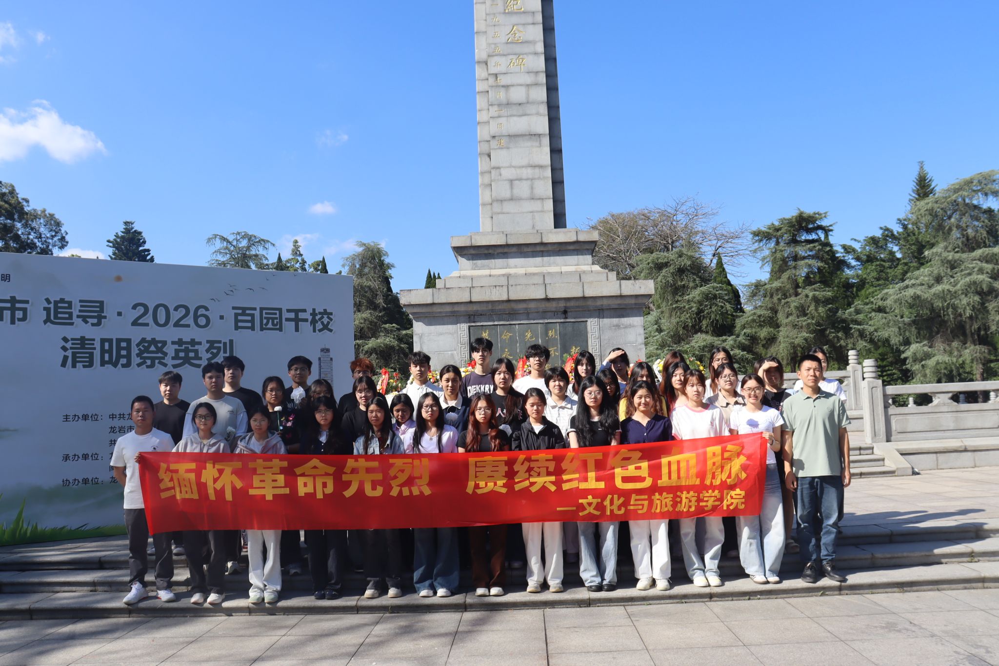 清明寄哀思,英烈永铭记。为缅怀革命先烈、传承红色基因,4月1日文化与旅游学院组织学生一同前往闽西革命烈士陵园,开展“缅怀革命先烈,赓续红色血脉”清明祭扫活动,以庄重肃穆的仪式缅怀革命先烈。