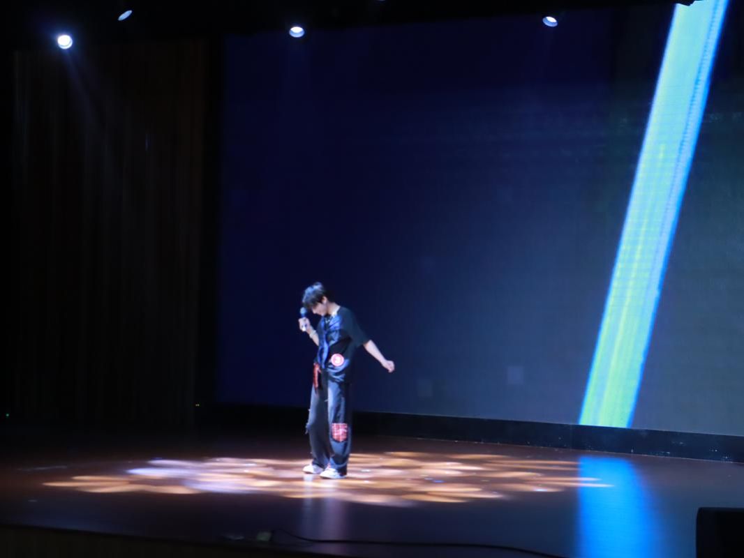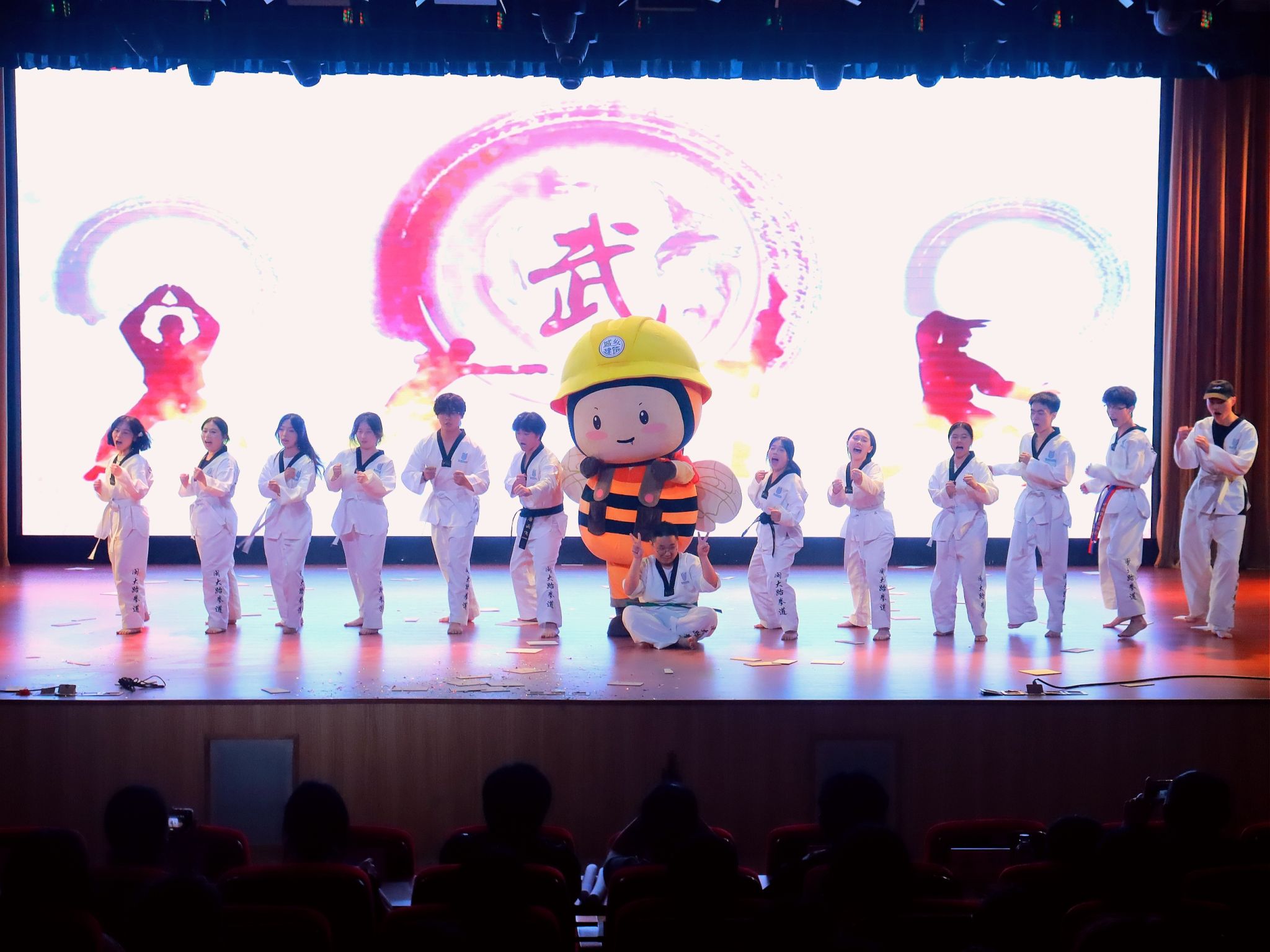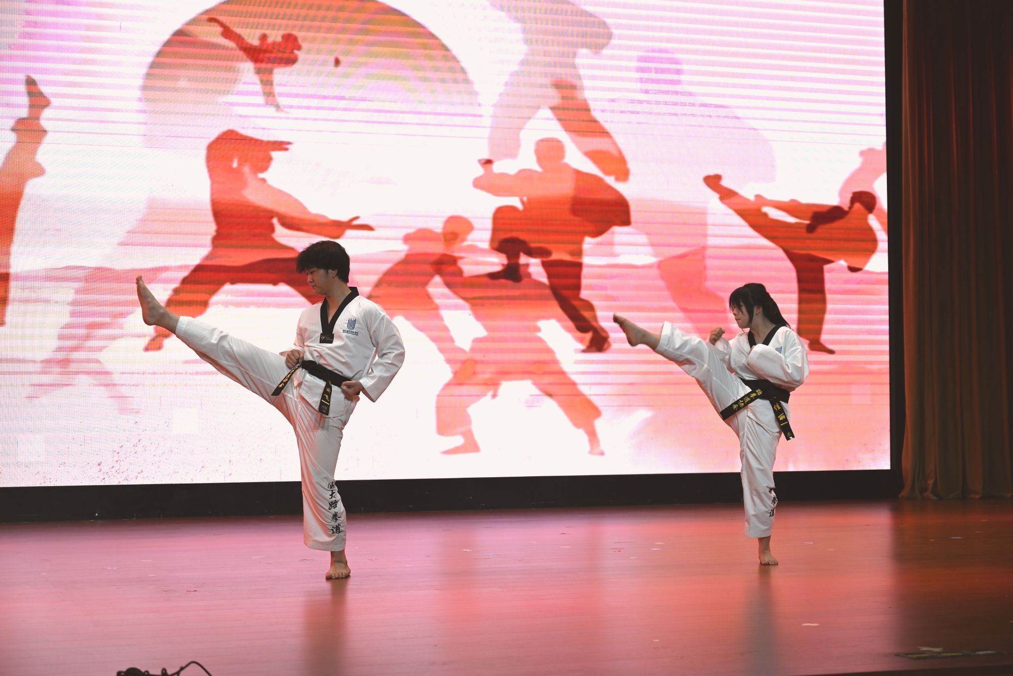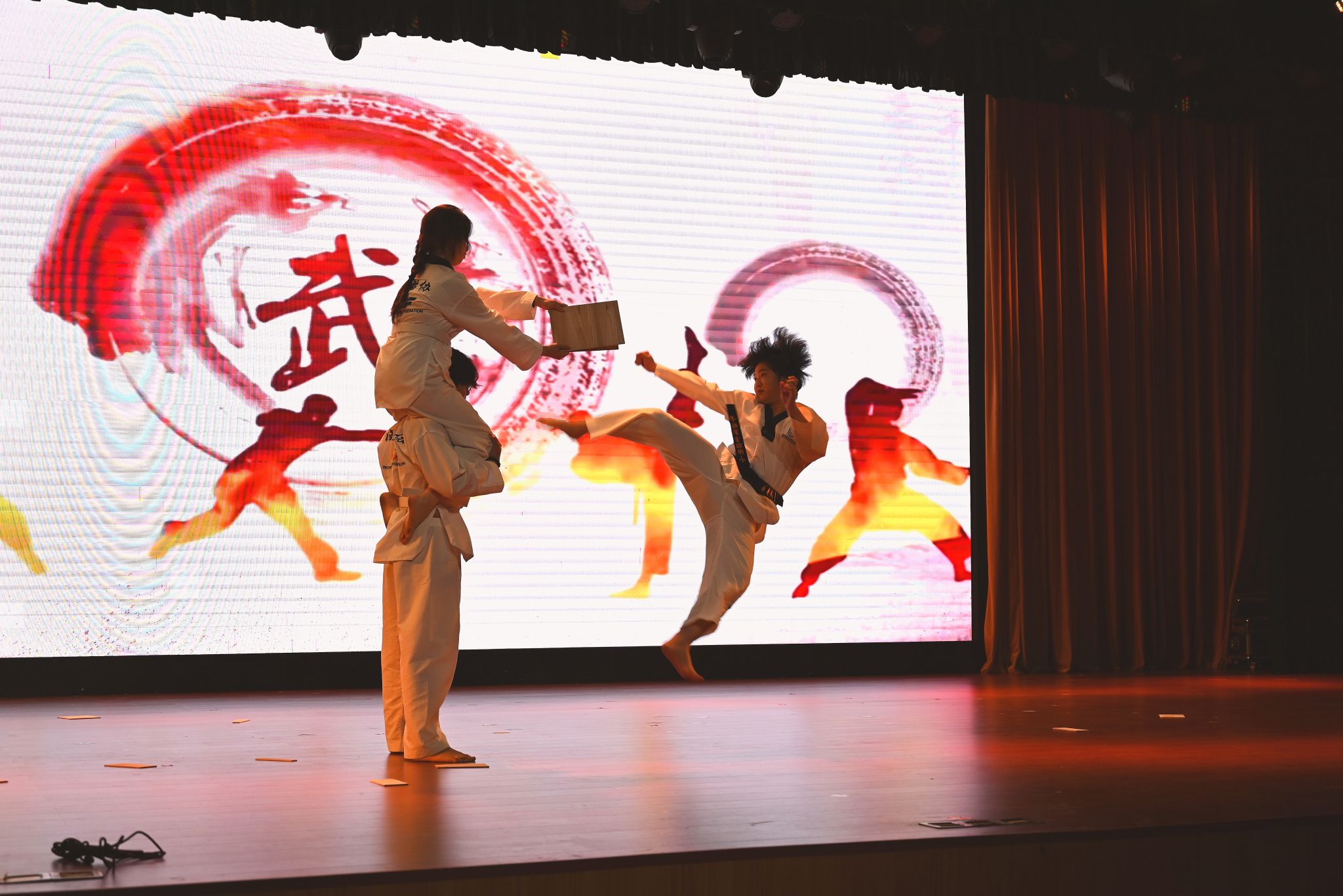 十五位选手全部演唱完毕,全场还沉浸在旋律里没有回过神来。灯光忽然一变,鼓点重新响起——跆拳道社团的成员们冲上舞台。