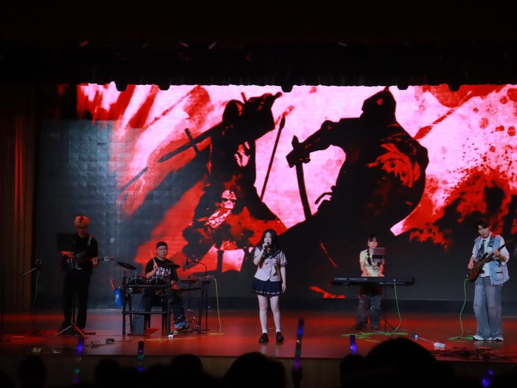 灯光骤暗,鼓槌落下。一支校园乐队率先炸场——电吉他的失真音色撕开寂静,贝斯低频震得地板发颤,鼓手双踩连奏点燃第一波尖叫。主唱一声高喊:“准备好一起唱了吗?”全场荧光棒瞬间举起,前奏响起,所有人跟着副歌大声合唱。一首热场曲罢,空气中全是跃跃欲试的躁动。