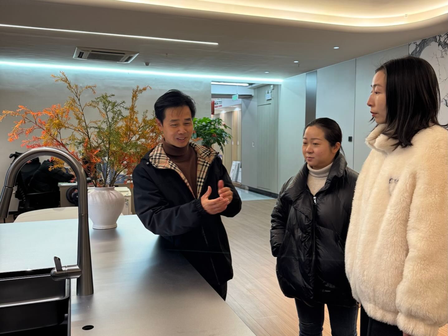 参观结束后,双方举行了亲切友好的座谈。座谈会上,俞永清详细介绍了公司的发展历程、核心业务、市场布局以及对室内设计人才的具体需求,特别强调了对于兼具艺术审美、实操能力、材料认知及市场沟通能力的复合型人才的渴求。校方教师则介绍了室内艺术设计专业的办学特色、课程体系、人才培养目标以及在校学生的实践技能情况。