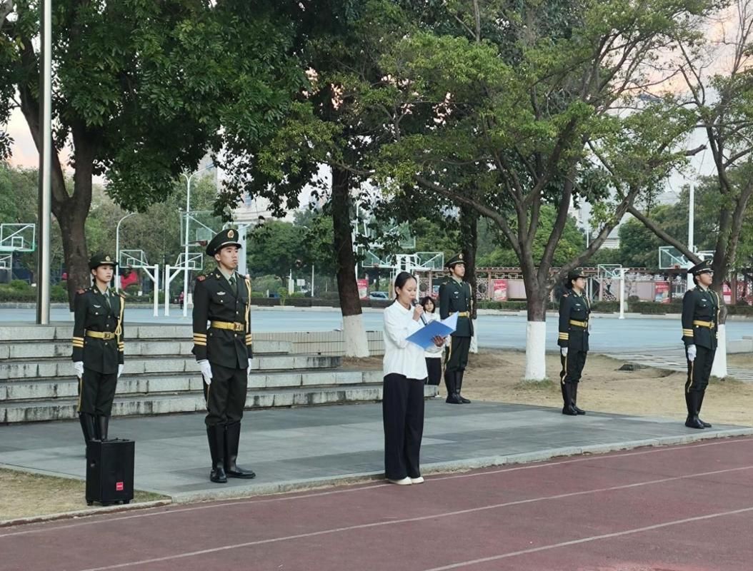 活动在雄壮激昂的《义勇军进行曲》中正式拉开帷幕。国旗护卫队迈着铿锵有力的步伐,护卫着五星红旗步入会场。全体师生肃立注目,凝视鲜艳的国旗冉冉升起,迎风飘扬。