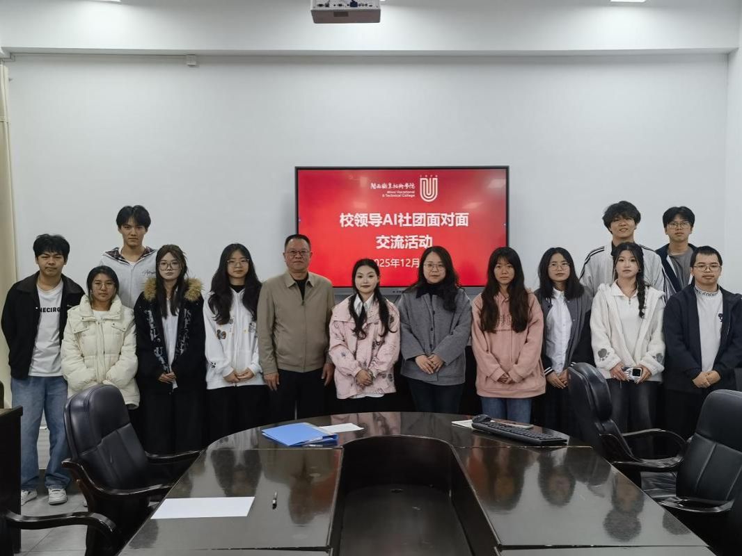 12月18日下午,梁俊平校长一行走进信息工程学院,与AI社团全体成员展开了一场别开生面的面对面交流活动。活动现场气氛热烈,师生围绕人工智能学习实践、社团发展及未来规划展开深入对话。