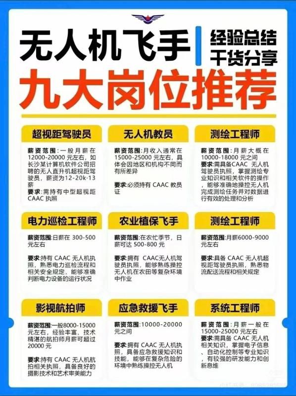 • 无人机驾驶员/飞手、商业航拍、应急救援、国防、检测