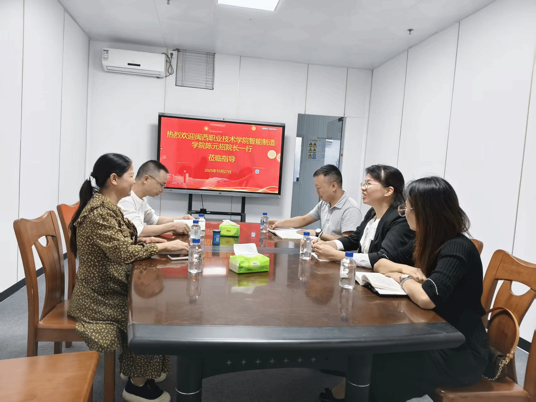 2025年10月27日,闽西职业技术学院智能制造学院院长陈元招率队前往龙岩联弘新材料有限公司进行工作调研,旨在系统总结前期合作成果,并规划下一阶段的合作方向。