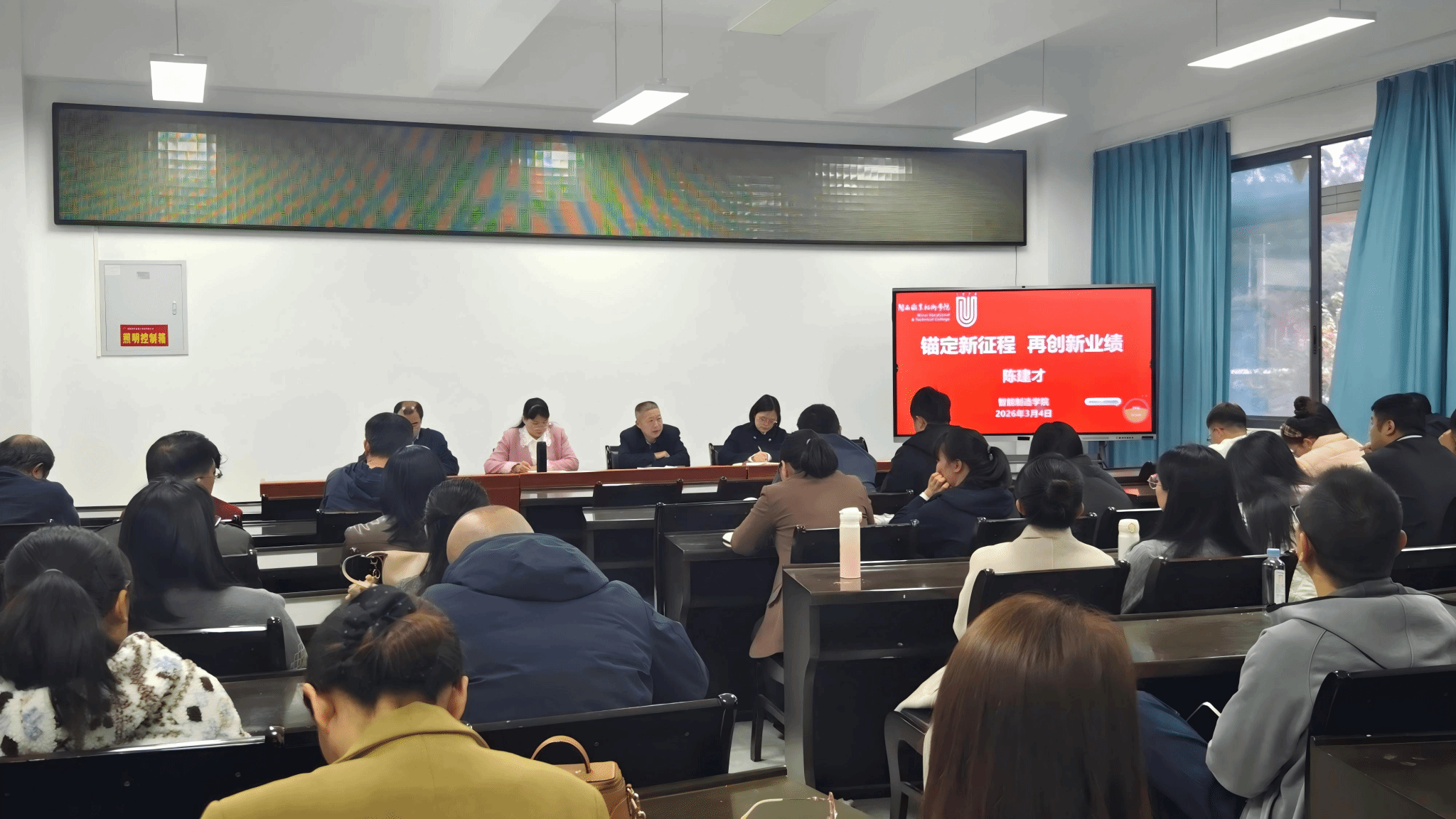 3月4日下午,智能制造学院在辛耕楼212会议室举行“深学争优、敢为争先、实干争效”行动暨2026年春季开学工作教职工大会,学院党委书记陈建才主持会议。