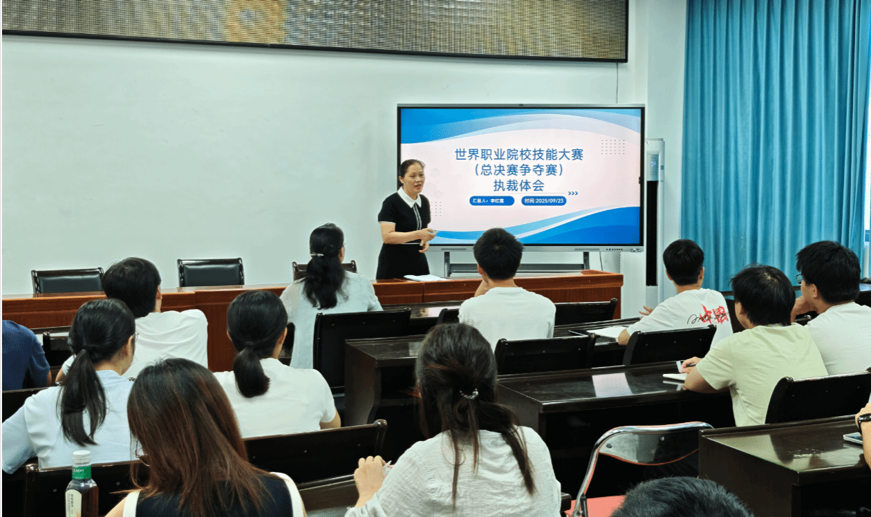 会上,林福教授结合实例,分享了选手在技能展示环节中的创新做法,特别是如何将人工智能技术融入实操过程,并强调了训练中需重视的细节把控。李红莲教授系统解析了大赛评分标准,从裁判视角指出高分选手的共同特质,详细介绍了比赛项目内容,并深入剖析了常见失分点及其原因。陈碧美副教授则通过执裁经历,阐述了选手如何在项目设计中融入新技术、体现实用性,并分享了优秀案例的成功经验。