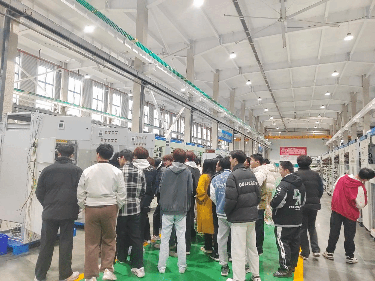 在学习过程中,龙净环保的技术专家为同学们系统介绍了环保装备电控系统的构成、关键电力电子技术的应用场景与工作原理,并结合实际生产案例进行了深入讲解。同学们通过实地参观电控设备生产装配线、核心控制器调试车间等,对理论知识在实际工业环境中的转化与应用有了直观且深刻的认识。
