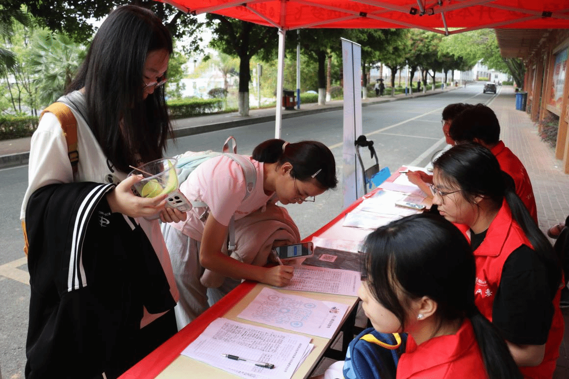 活动现场,“河小禹”志愿服务队志愿者在宣传点位开展服务,通过摆放主题易拉宝、发放护河宣传单等形式,向师生普及河长制相关知识与河道保护法律法规,面对面讲解节水护河的重要意义,积极倡导绿色低碳生活理念。为增强活动互动性与趣味性,现场特别设置问卷答题环节,师生扫码参与答题,答对即可领取奖品,在轻松互动中巩固环保知识,进一步提升护河节水的思想自觉与行动自觉。