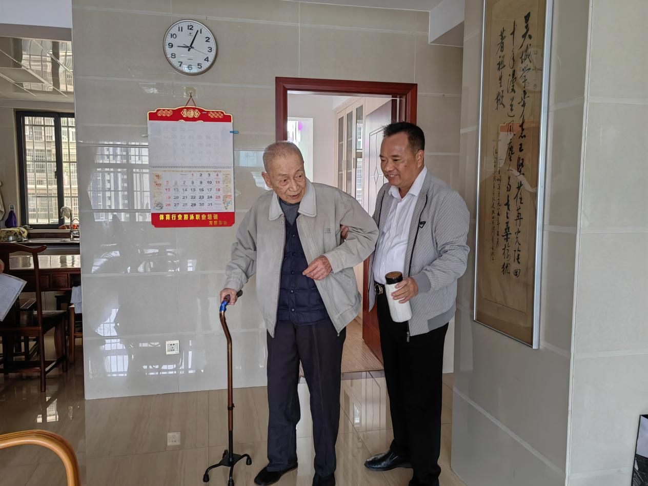 在余尚城老同志家中,林伟能副书记搀扶老同志就座后,拉着老人的手深情说道:“老同志是党和国家事业的宝贵财富,也是学校的宝贵财富。感谢您为新中国的建立和学校的发展作出的贡献,真心希望您能继续为学校发展提出宝贵的意见建议,我们将不忘初心,砥砺前行,把学校建设发展得更好。”他表示,学校始终坚持用心用情做好离退休工作,把服务好、保障好老同志的生活作为一项重要事业,老同志们有需要协助解决的事情可及时与学校沟通,我们必将竭尽所能为老同志解决困难和后顾之忧。